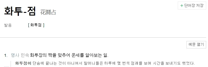 - 화투점(花 꽃 화, 鬪 싸울 투, 占 점칠 점)